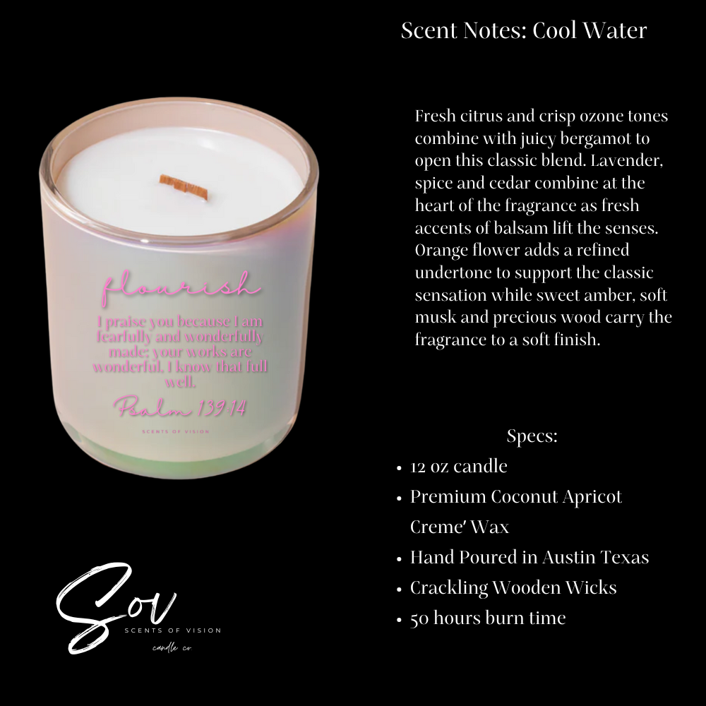 Flourish Psalm 139:14 12oz Coconut Soy Wax Cool Water