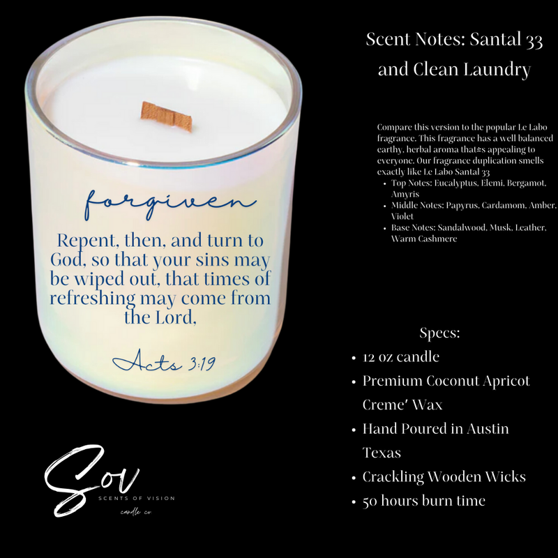 Forgiven Acts 3:19 12oz Coconut Soy Wax Candle Vanilla Noir *BACK IN STOCK*