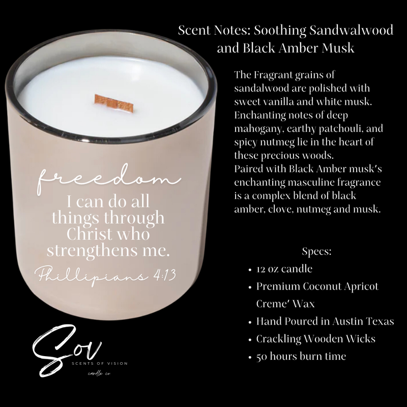 Freedom Phillipians 4:13 12oz Coconut Soy Wax Mahogany and Vanilla*BACK IN STOCK**