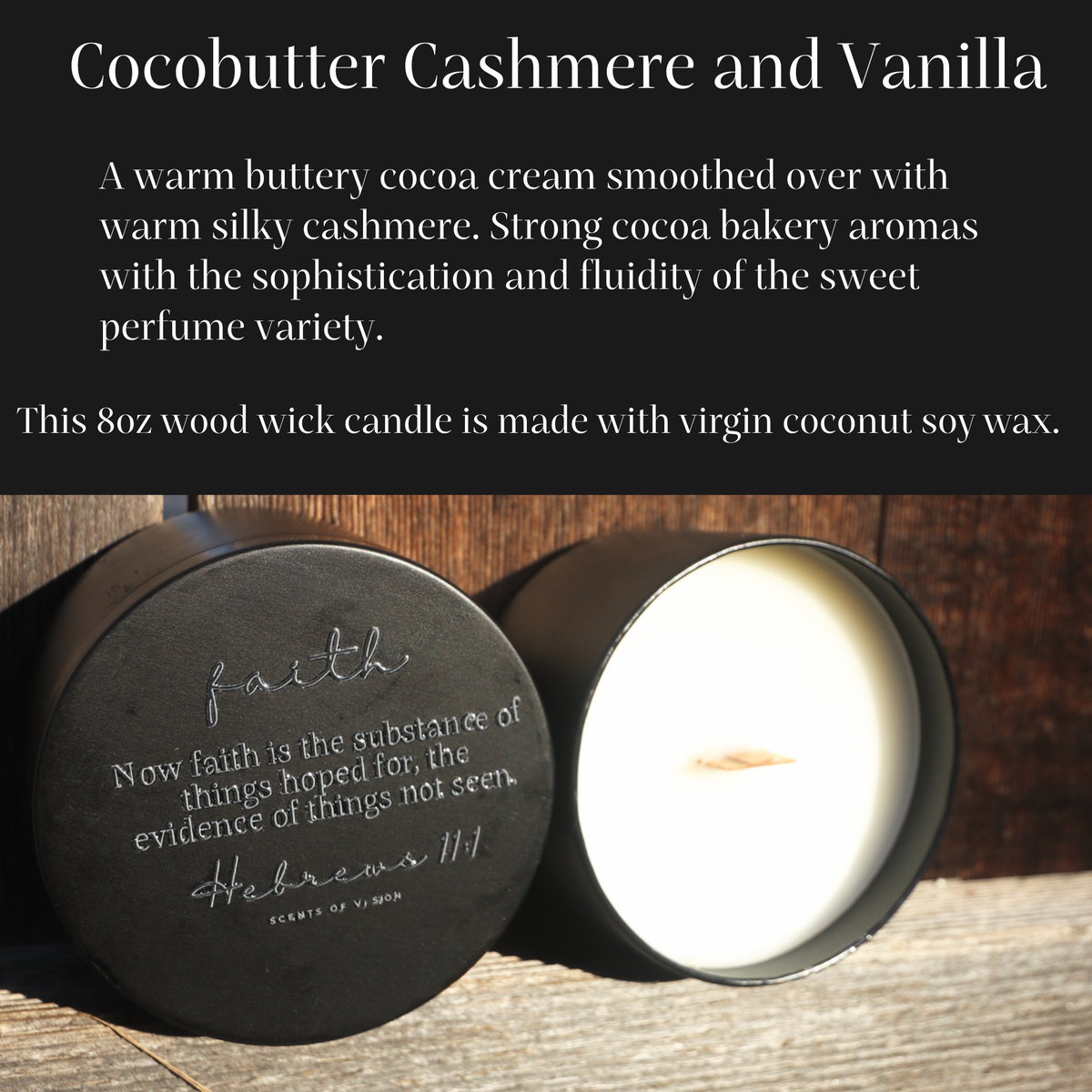 Faith Cocobutter Cashmere and Vanilla 8oz Wood Wick Candle