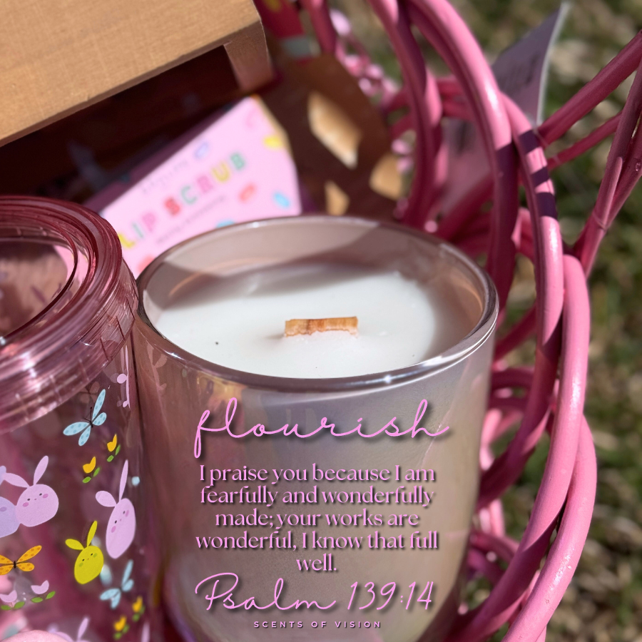 Flourish Psalm 139:14 14 oz Coconut Soy Wax Cool Water and Dove Soap